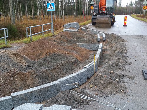 Jobbet betstod av ca 2,4 km sten och kantsten längs bussgata.